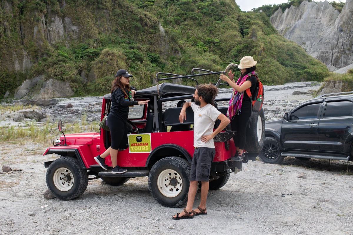 行程一早由專車於馬尼拉市區接送,直驅火山探險基地,抵達後換乘四驅吉普車展開刺激旅程。四驅車行駛在特殊的火山地形上,沿途壯麗景色一路展開,荒涼又雄偉的景致令人驚豔,視覺與感官都能獲得極大震撼。