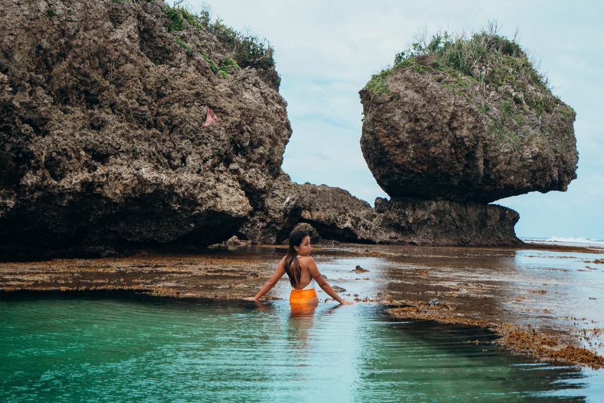 來到山景觀賞點(Mountain View),登上制高點即可俯瞰錫亞高島 360 度全景,茂密的椰林、蜿蜒的河流與遠方的湛藍海景交相輝映,壯麗景色令人歎為觀止,尤其日落時分,晚霞染紅天際,更是美得讓人沉醉。核心景點馬格澎波岩池(Magpupungko Rock Pools) 堪稱自然奇蹟,退潮時會顯露出數個清澈見底的天然岩池,環繞著獨特的黑色岩層,在此暢泳、浮潛,仿佛置身於大自然打造的私人泳池,盡情感受清涼與愜意。