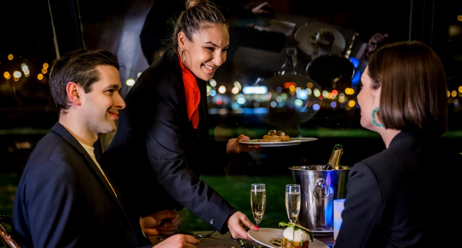 費用包含:90 分鐘遊船、三道式餐點、香檳一杯、窗邊座位、桌上花瓣
