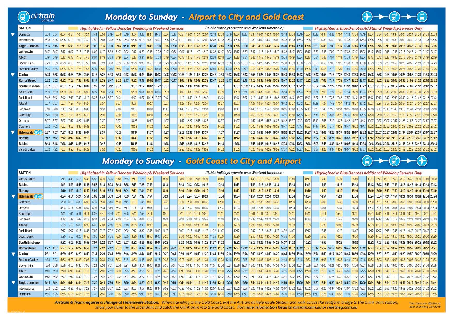 準備好享受輕鬆無憂的旅程了嗎?告別搭乘大眾運輸的煩惱,迎接Airtrain吧!我們現代化的列車提供布里斯本國際機場火車站與黃金海岸衝浪者天堂之間便捷的交通連結。