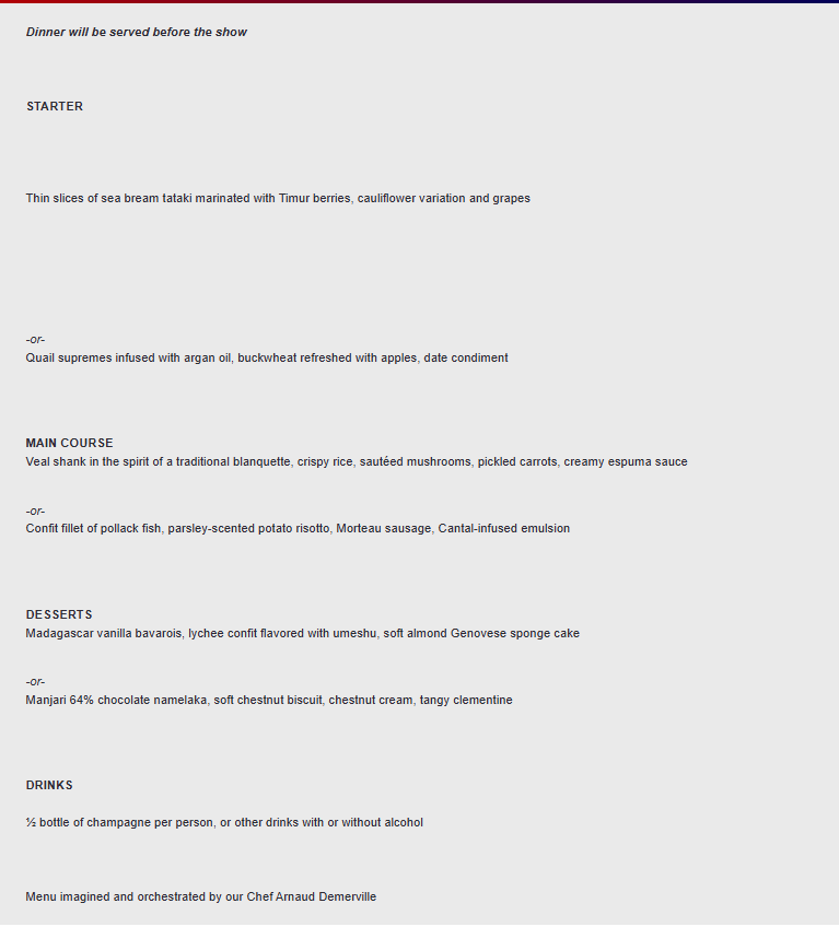 當季菜單:https://res.klook.com/image/upload/Moulin_Rouge_Soirees_Belle_Epoque_Menu_qncls4.pdf