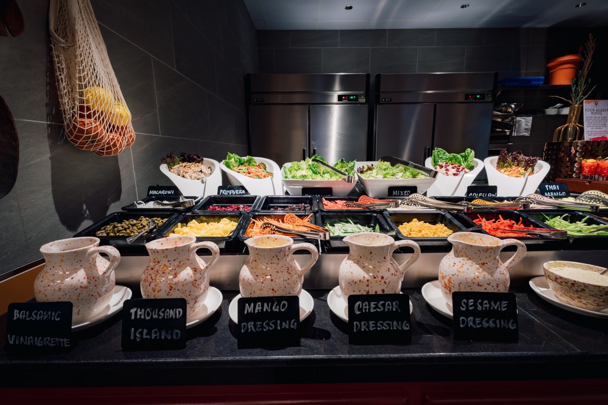 餐廳以「美食小巷」為核心概念,打破傳統自助餐格局,規劃多個風格攤位,呈現菲式、中式、日式、韓式、美式等多國風味,現點現做、隨取隨吃,還原街頭美食的新鮮與熱鬧感。日料區備有新鮮生魚片、經典壽司、天婦羅與味增湯,海鮮區供應生蠔、奶油焗海鮮與現煮海鮮,保證口感鮮美。熱食區涵蓋菲式燒肉、北京烤鴨、韓式炸雞、義大利麵等,口味地道選擇豐富。