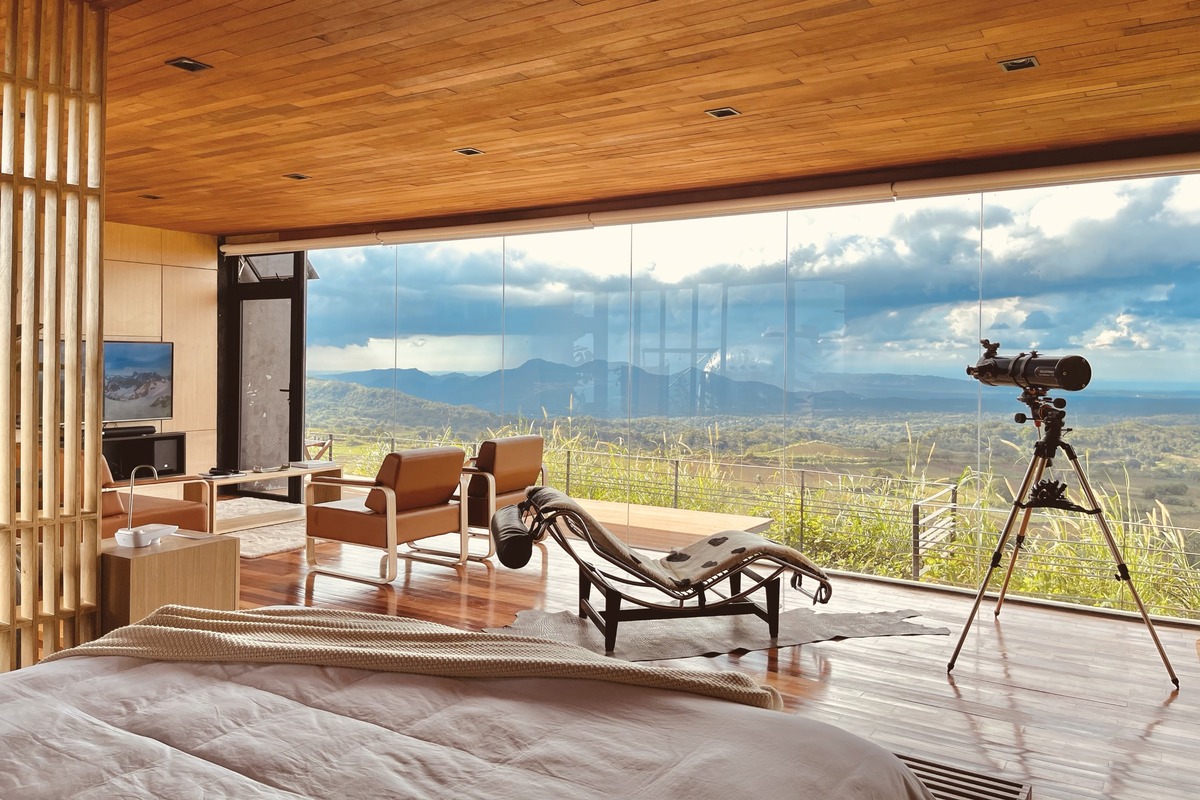 住宿分為三種特色房型,滿足不同度假需求。1 號小屋為中世紀現代風格,空間寬敞,設有兩間臥室,可容 8 人,配備齊全廚房、獨立衛浴與私人泳池,落地窗直面巴圖勞山、巴拉延灣與那蘇古布的壯闊風光,適合家庭或好友團聚。2 號小屋同樣簡約現代,主打山景視野,晨起即可飽覽塔拉米坦山與鸚鵡嘴峰的絕色景致,適合追求寧靜與自然的旅客。