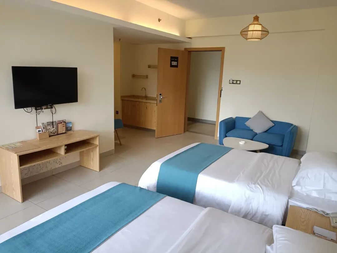 同埋朋友一家過嚟度假,呢間酒店真係唔錯!陽臺雙床房夠大,兩個1.2米床仔女瞓得好舒服...