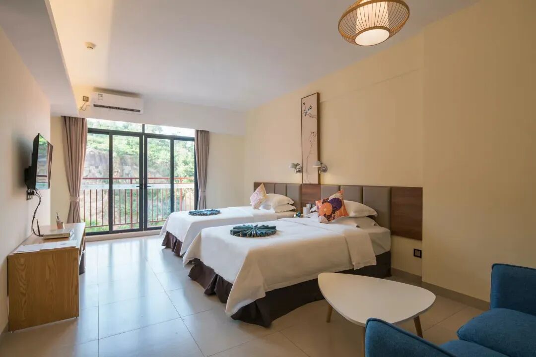 ///豪華陽臺雙床房/// 約40㎡,1.2m*2m*2張,獨立浴室和洗手間,帶獨立陽臺