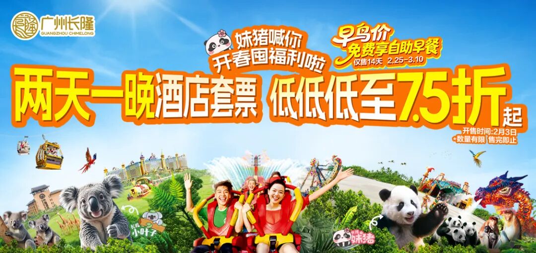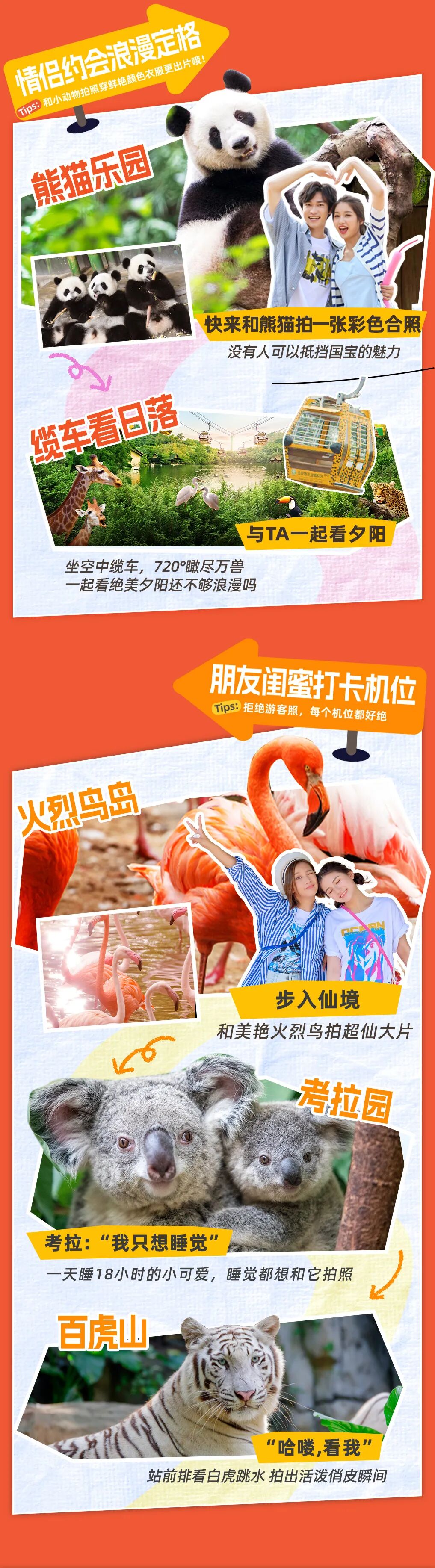 (1)長隆野生動物世界:可尊享提前至少半小時入園體驗;搶先體驗小火車遊覽區及金猴王國展區;入園通道:動物世界北門;具體開園時間以園區當日公告為準