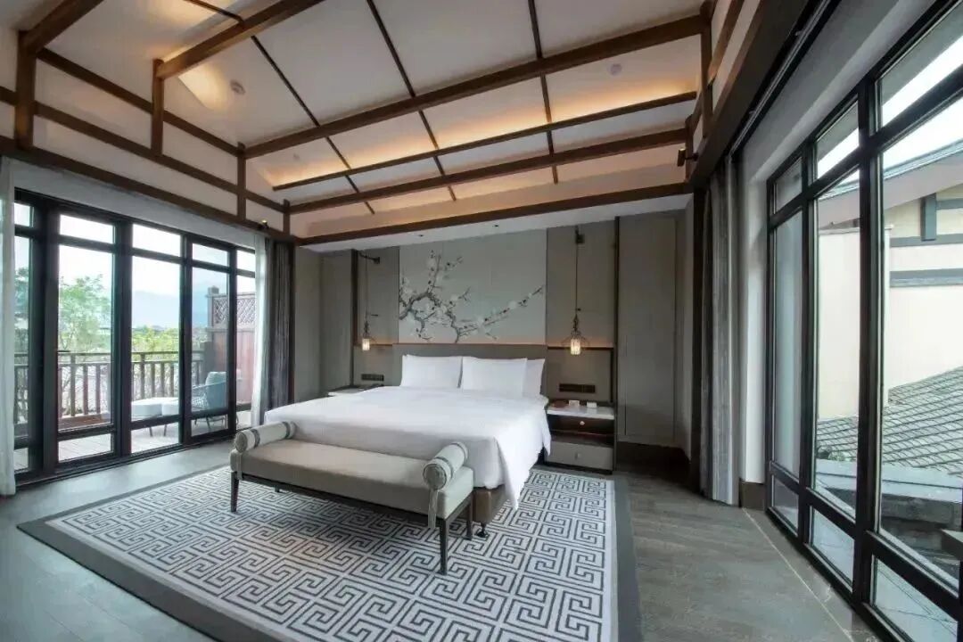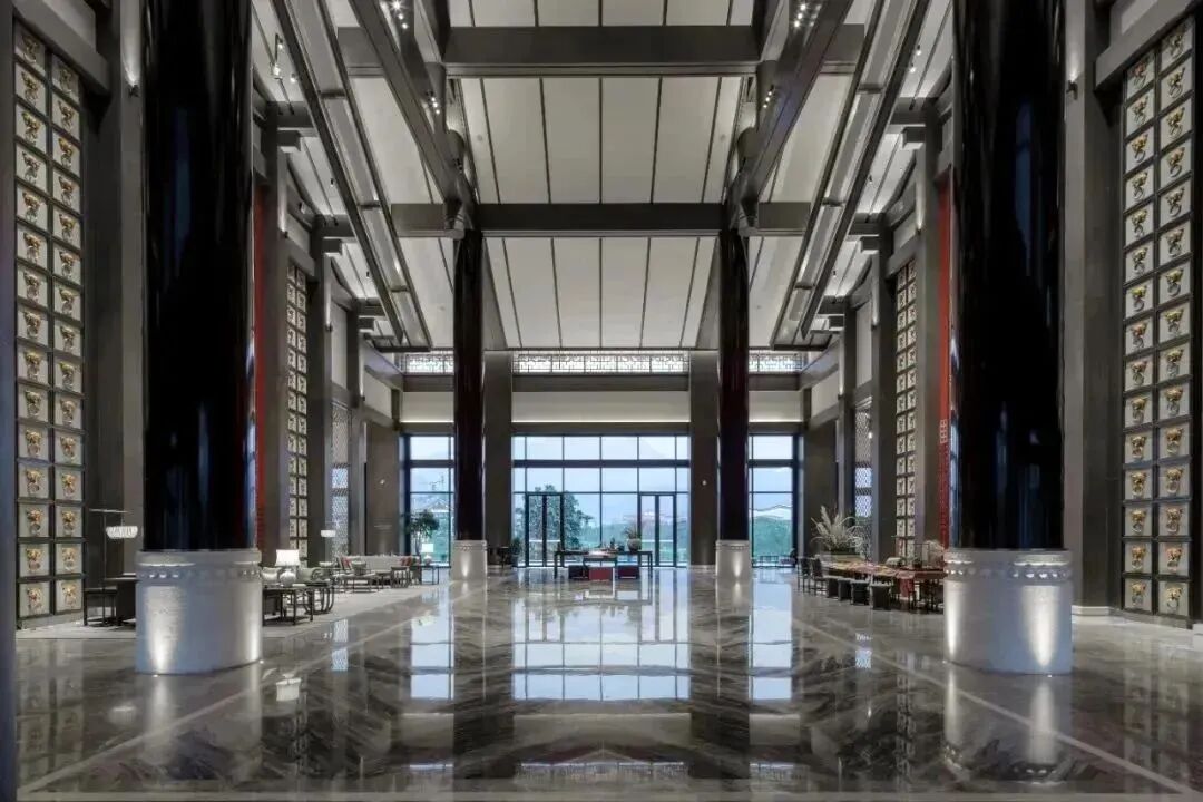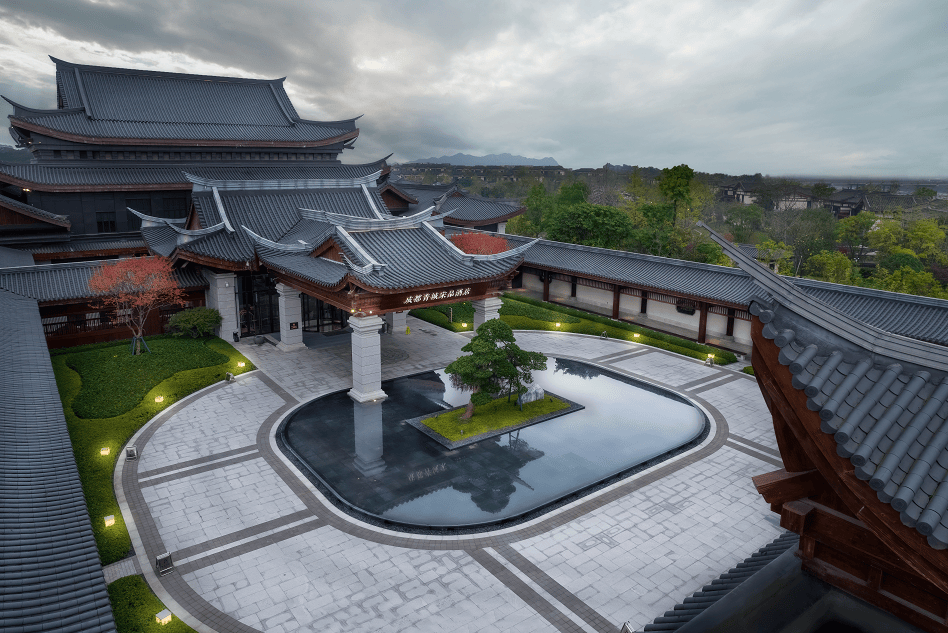 酒店因地制宜融入西蜀古建築及歷史文化的精髓元素以“川西風韻 現代演繹”為主題將“度假感”、“情境化”、”低調奢華”作為設計理念在設計過程將川西當地文化密切結合讓年代感與現代感並存