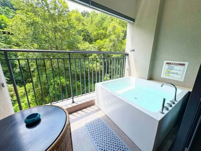 客房裏zui為精妙的設計便是這位於陽臺處的泡池了。陽臺泡池不僅沒有室內泡池的壓抑和沉悶,還能與陽臺外的自然環境完美交互。我們既可以在這兒欣賞到遠處的景色,還能感受微風輕撫的愜意和舒適。