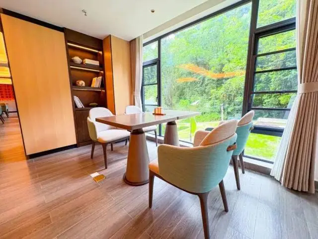 餐廳空間寬敞,燈光柔和不刺眼,座椅柔軟舒適。伴隨著窗外的青山綠水,大家一定可以得到很不錯的用餐體驗。
