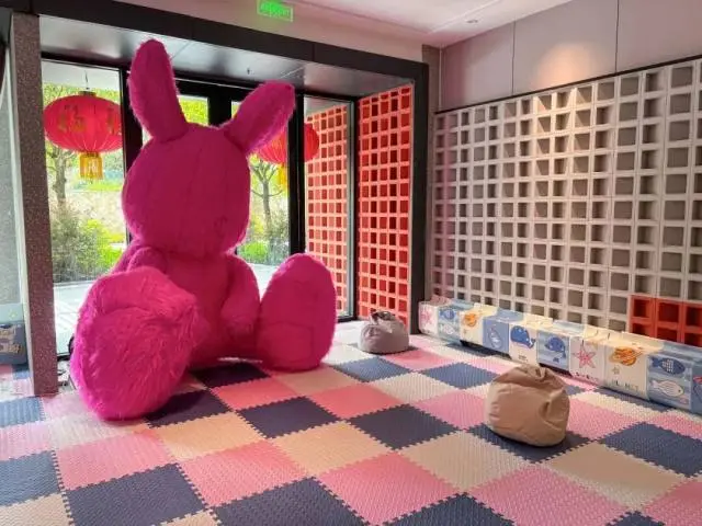 酒店配備有專門供兒童遊玩的兒童活動區,不僅有柔軟的地墊,四週墻壁上也有軟包包裹。超大型的兔子玩偶,不僅能讓孩子們歡喜不已,也能成為拍照打卡的好地方~