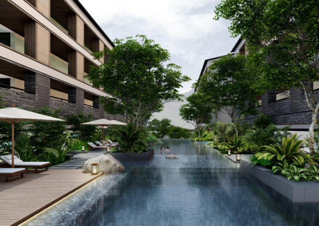 酒店依托豐富的森林生態資源,以78℃天然溫泉為載體,由世界第一的設計公司(CCD設計公司)主筆設計,致力於建造一個“頂級森林溫泉休閑度假目的地酒店”。