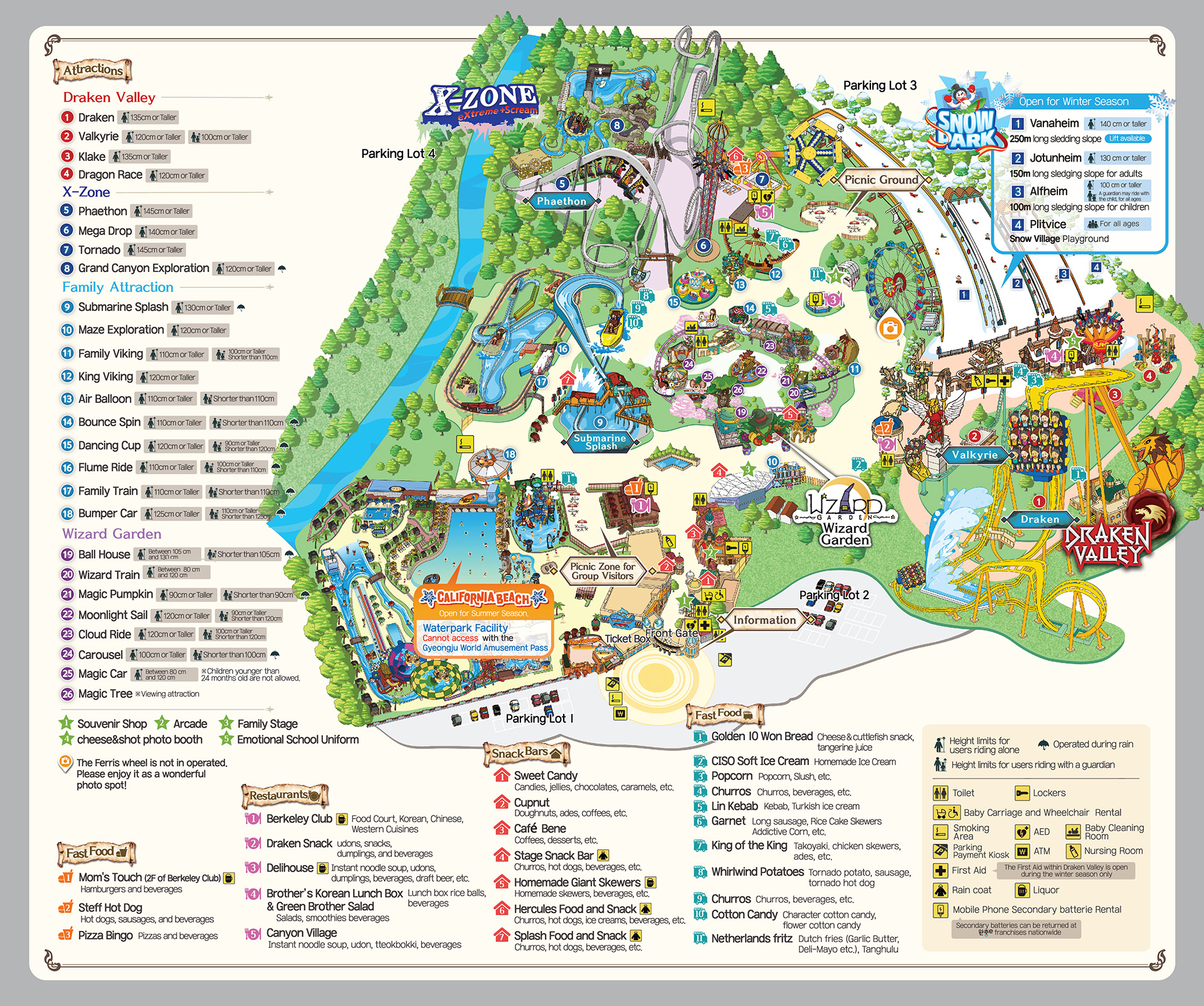 樂園擁有令人興奮的遊樂設施,如過山車、水滑梯和旋轉木馬,以及展示該地區豐富遺產的文化展覽,包括古代韓國建築的複製品和傳統表演。
