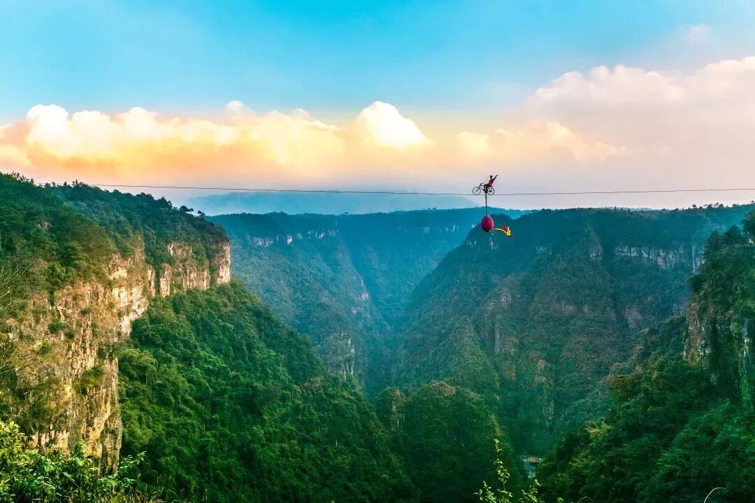 景區裏的 高空雜耍表演 也非常精彩無論你在在谷底、棧道和半山腰表演時間一到擡頭就能欣賞