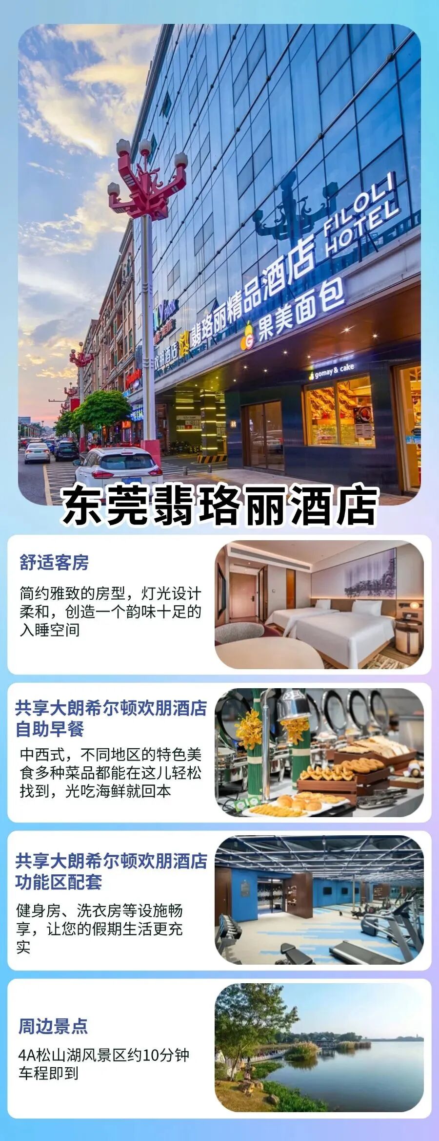 和朋友來東莞放鬆,選了這間翡珞麗酒店,整個體驗超讚!離松湖煙雨超近,那邊綠道很長...