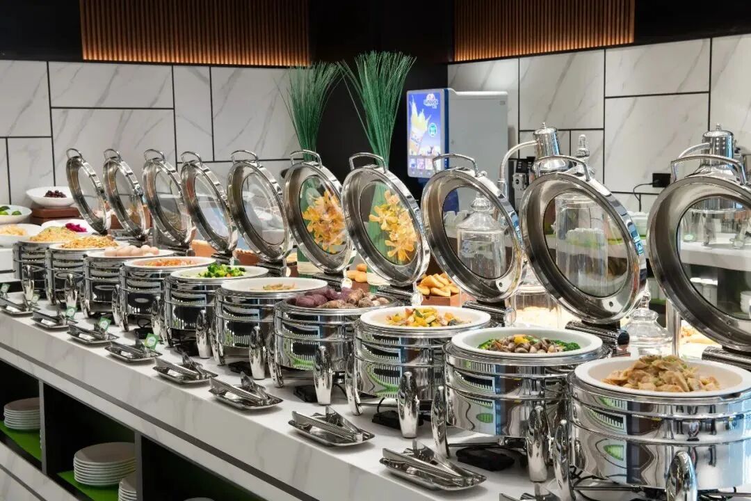 現代簡約的餐廳,現磨咖啡、現烤面包、中式蒸點、豐富的中西式早餐為您開啟元氣滿滿的一天,為您繁忙的旅途增添一份歡愉和安心。