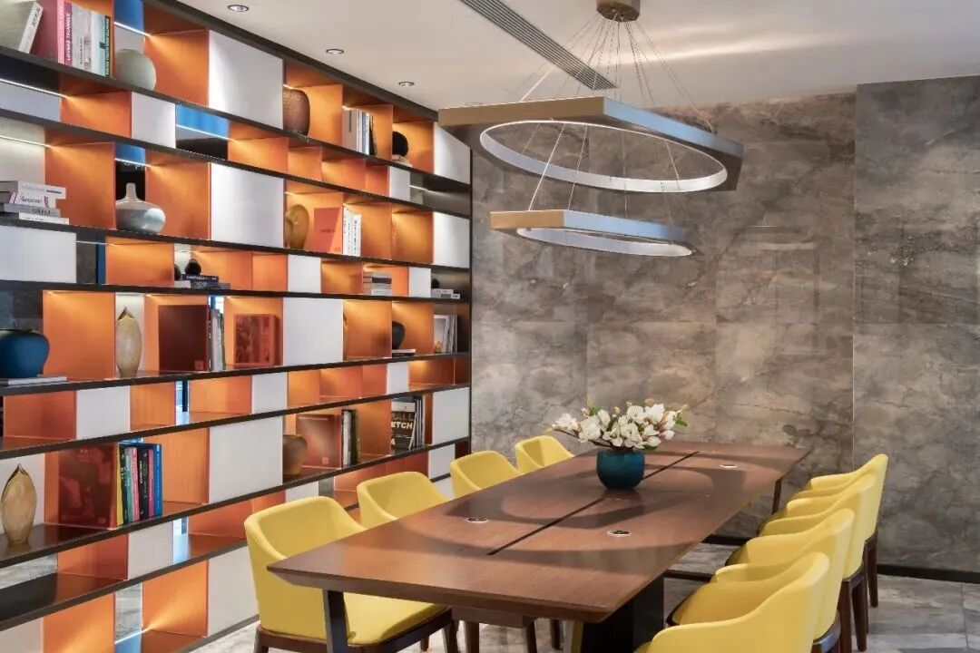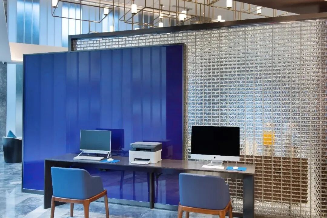 空間布局合理,寬敞開闊;休息區設置貼心,椅子色調與墻面顏色整體呼應,展現酒店品質與獨特魅力。