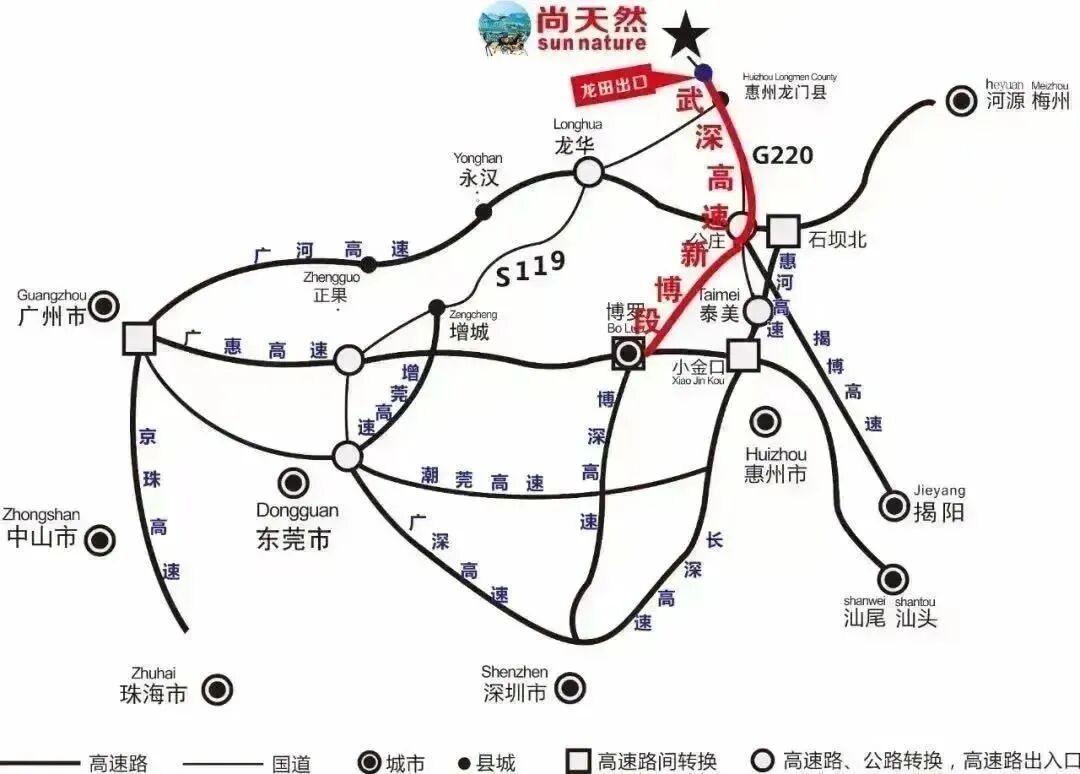 惠河區(1.5小時內車程):進入廣惠高速(博羅入口)→轉武深高速新博高速路段→龍田出口右轉2公裏到達尚天然溫泉旅遊度假區