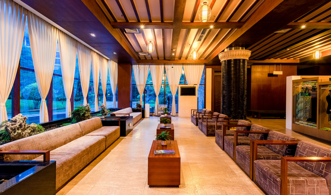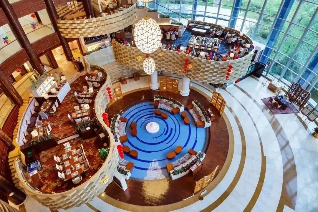 酒店采用新亞洲風格布局有濃厚的度假氛圍,富麗堂皇的酒店大堂燈光從極富藝術感的穹頂傾瀉而下大堂靚麗奪目,迎接著一批又一批城市的旅人