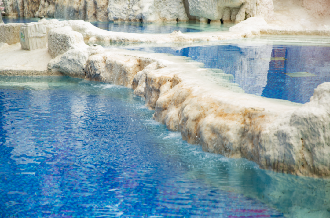 中鐵花水灣溫泉酒店的古海溫泉“以硫化氫為主的高複合溫泉”溫泉含礦化度10620mg/L出水溫度約68℃,pH值7.97