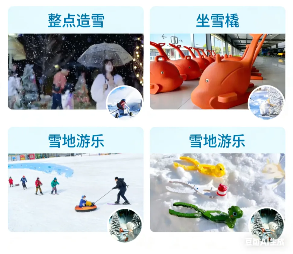 從大碗旁的雪坡頂端俯沖而下,感受速度與激情!還有雪地保齡球、雪地拔河、坐雪橇、堆雪人打雪仗……大人小孩都能玩嗨的冰雪樂園!