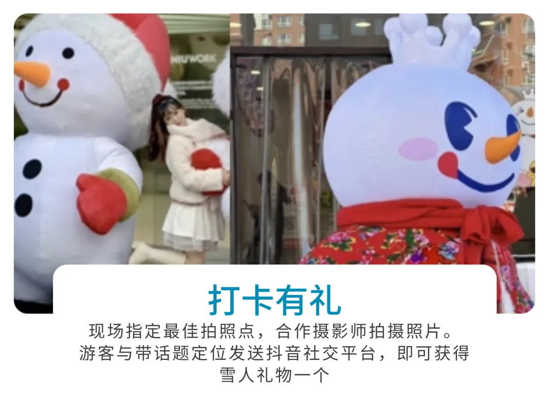 - 遊客與帶話題定位發送抖音社交平臺,即可獲得雪人禮物一個