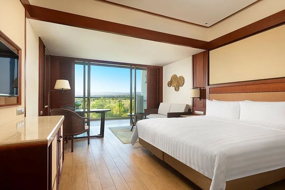 酒店擁有488間度假客房、套房以及8棟風光宜人的泳池別墅。每間都配有私人陽臺,可賞壯麗海景,美麗延綿的沙灘或園林景致。