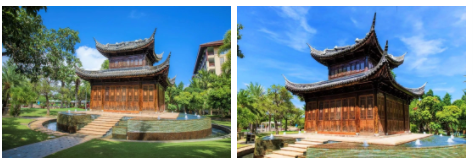酒店還擁有兩處大有來頭的古建築:木藝術館佔地1,540平方米,直接把幾十余年前因杜月笙發起重修而名聲大噪的宅子'請'了過來,讓三亞這座海島,增添了濃郁的江南氣息。