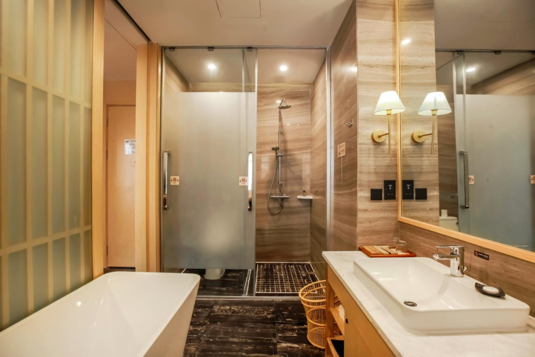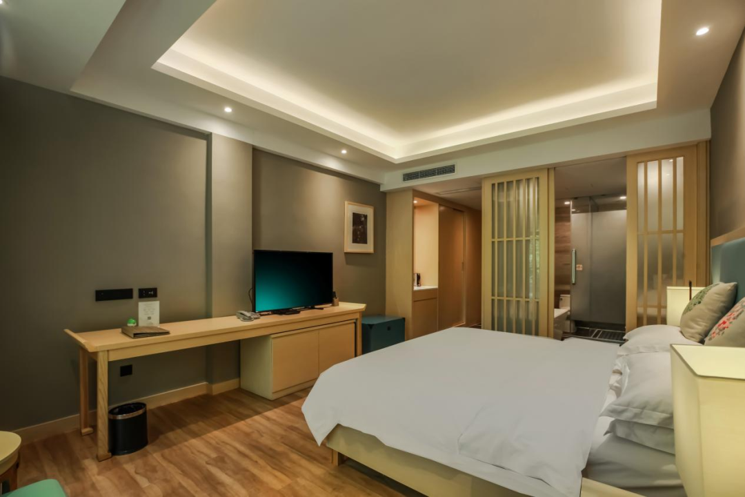 40㎡的豪華寬敞客房,是獨屬於你的中式雅舍。衛生間幹濕分區,細節處藏著現代舒適,獨立浴缸可洗去旅途疲憊,一方獨立陽臺更是點睛之筆 —— 憑欄而立,青山綠水入眸,古城的中式意境與山水的自然靈秀相融,晨起看薄霧漫山,傍晚賞落日熔金,春節的美好光景,皆可私藏。