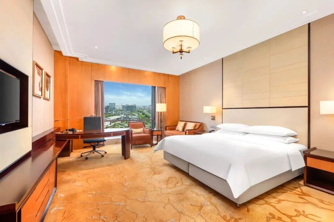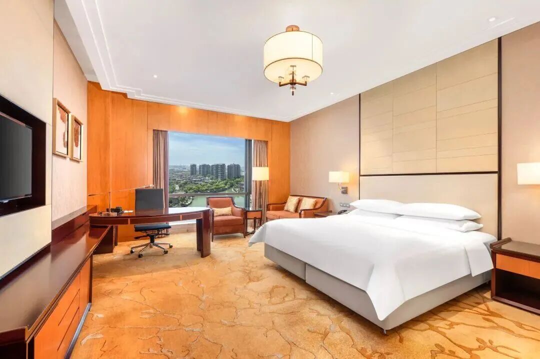 350間客房及套房 面積45-225㎡全景落地窗,或賞湖景,或看城景350間大空間客房及套房,客房分布在5樓-14樓,設施完善且智能。全景落地窗的設計,包攬武進區的繁華城市景觀或開闊的溪湖景觀。