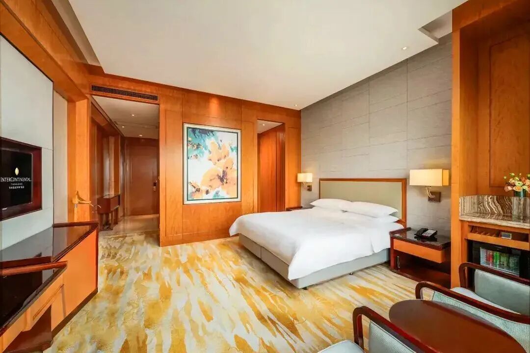 ▲ 洲際豪華行政房,45㎡,位於12-17樓洲際行政俱樂部位於在17樓,落地窗外是天際美景、城市美景。用餐區、會客區和小型會議室一應俱全,在此可享用中西式下午茶,體驗晚間歡樂時光。