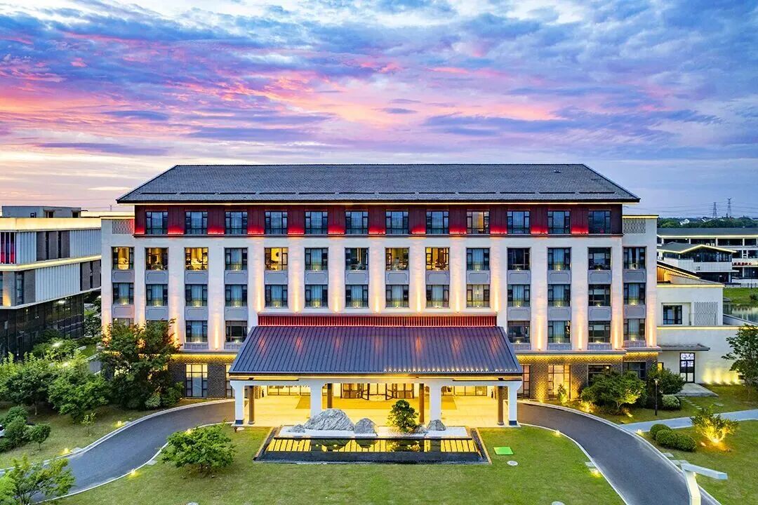 設計以江南建築特色為本底,融合水、竹、紅色精神,江南水鄉特色與紅色精神交輝相映,打造中國首創的情景式紅色教育主題酒店。