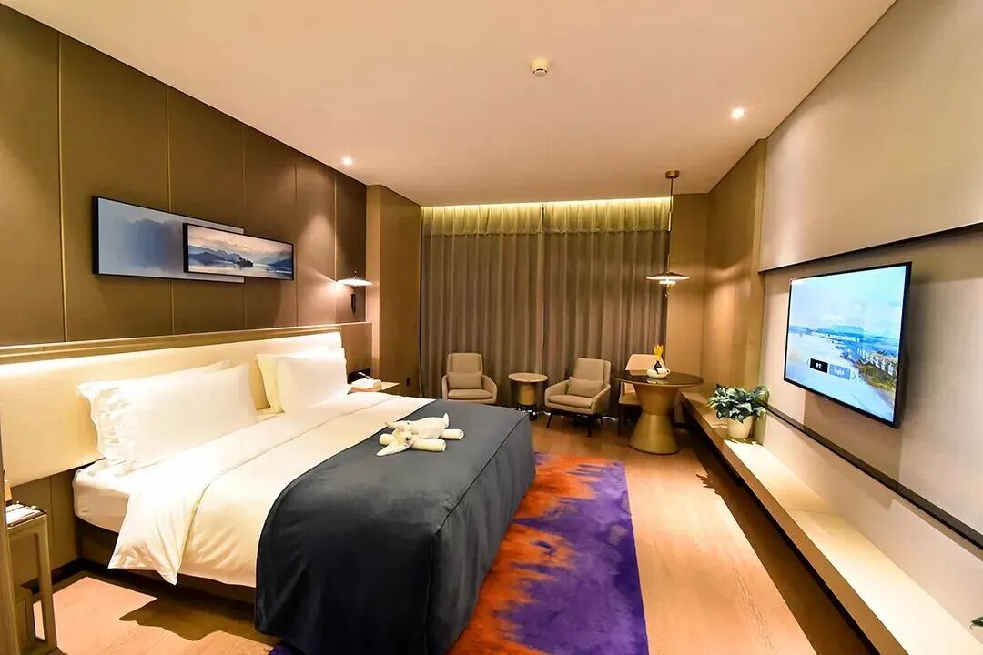 酒店有紅色書屋、靜心抄寫區,可體驗漢服、手工漆扇活動,還有健身房、乒乓球室、棋牌...