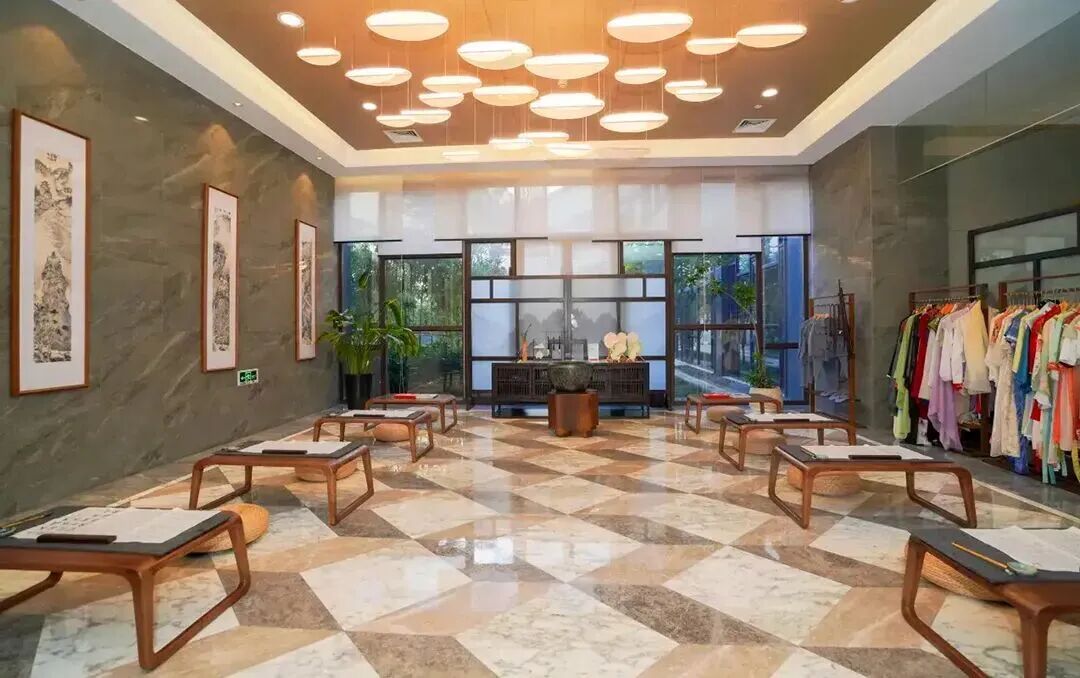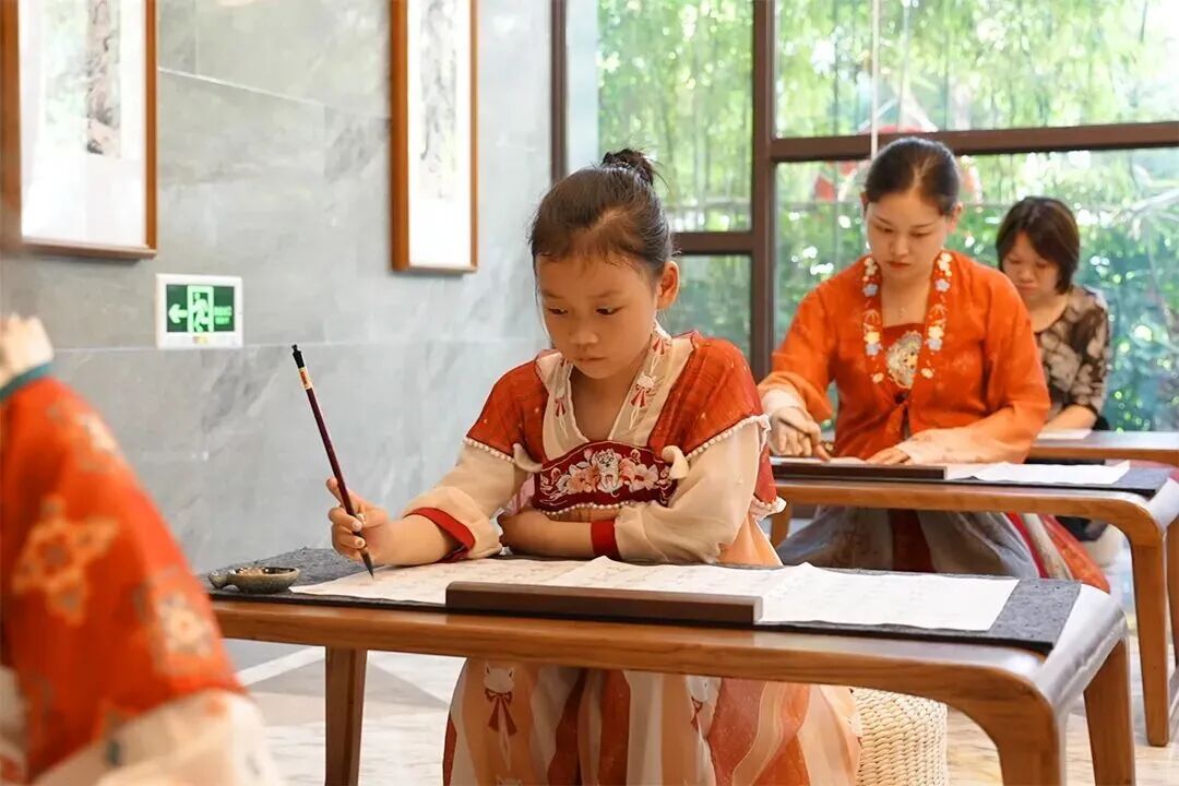 酒店休閑康樂配套也十分豐富,設有紅色書屋、靜心抄寫區,還可以體驗漢服以及手工活動,如漆扇等,大人孩子都能參與其中。