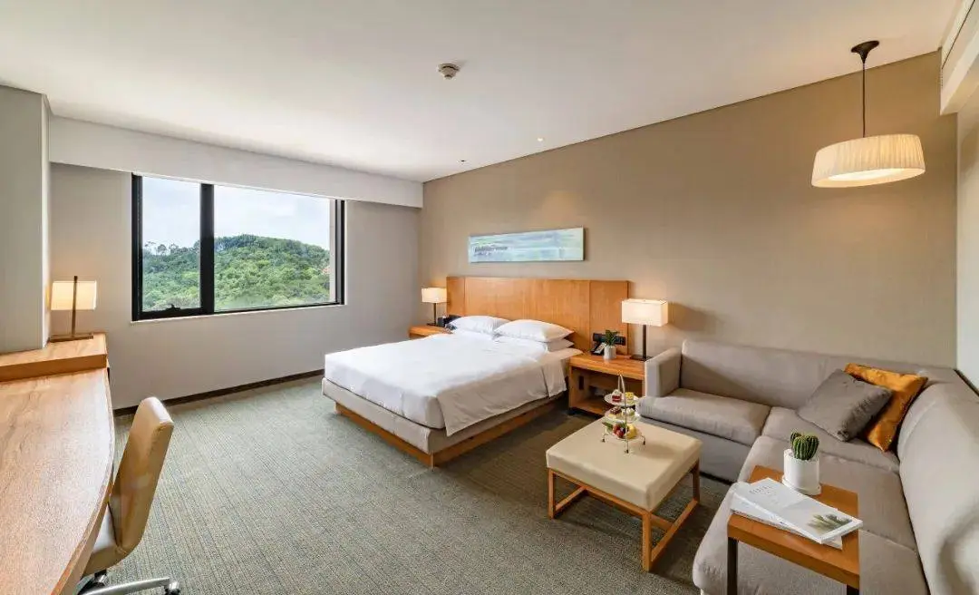 出差順便staycation,住裏水凱悅嘉軒,選咗南海影視城套餐,酒店全落地窗睇到好多綠色...