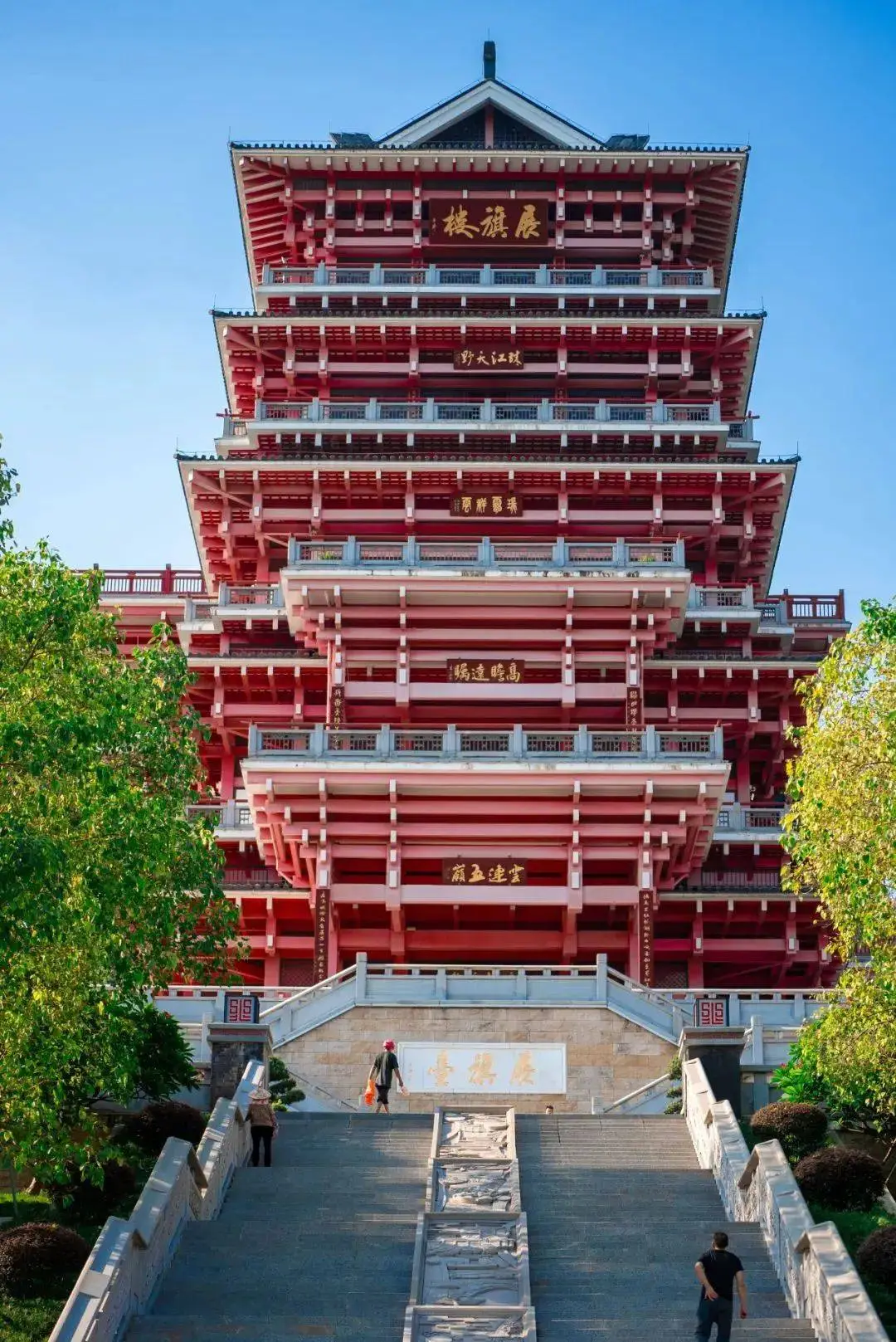 展旗樓位於裏水展旗峰生態公園,依山而建,沿著小路而上一步一景,仿佛漫步在京都一般,賞心悅目!