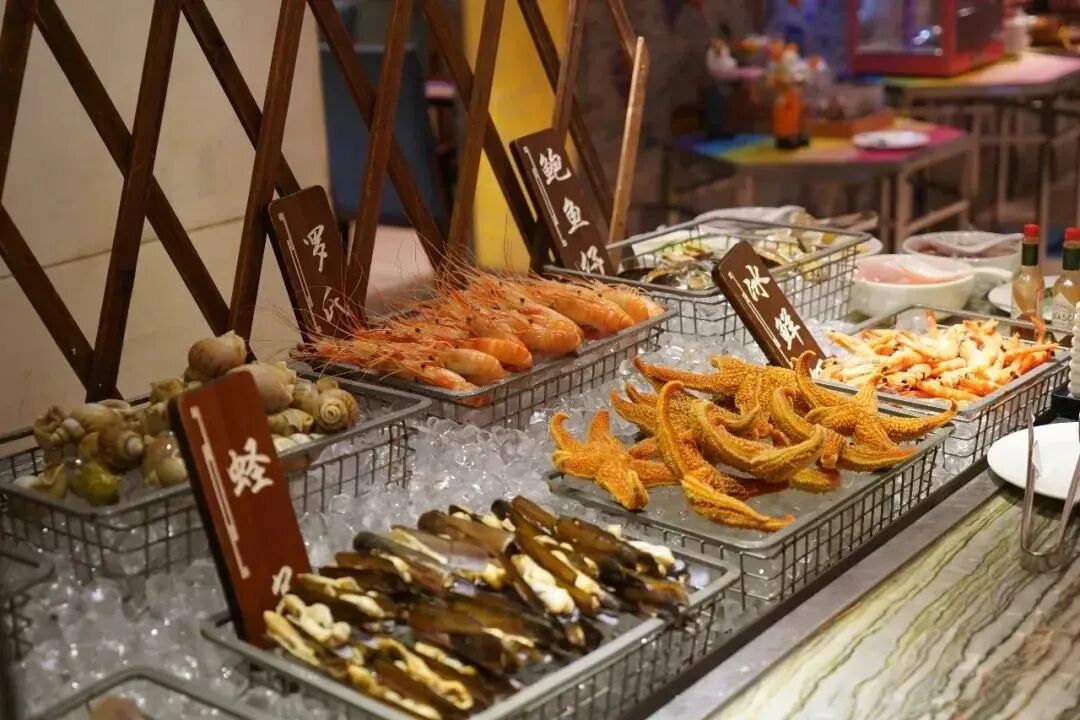 包含多種海鮮(生蠔、扇貝、皮皮蝦、青口、海螺等)、烤肉,食材不限量自取;還有新鮮...