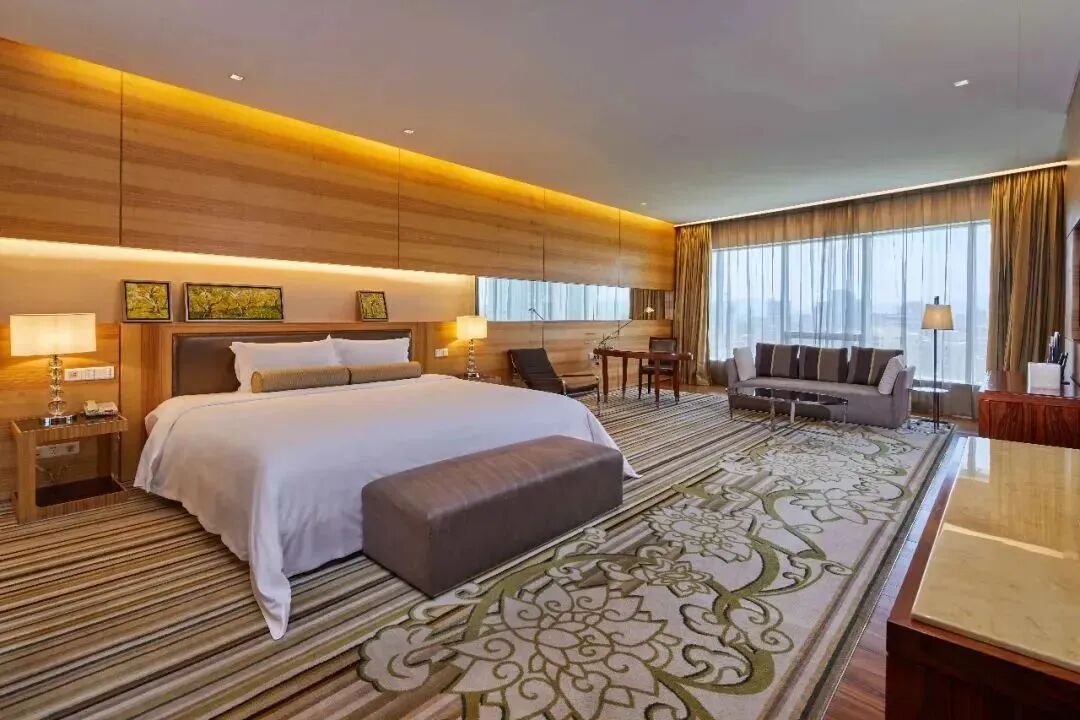 週末不想遠走,選了東莞厚街這間酒店,地鐵2號線方便,臨萬達逛吃超爽!豪華房暖黃配色...