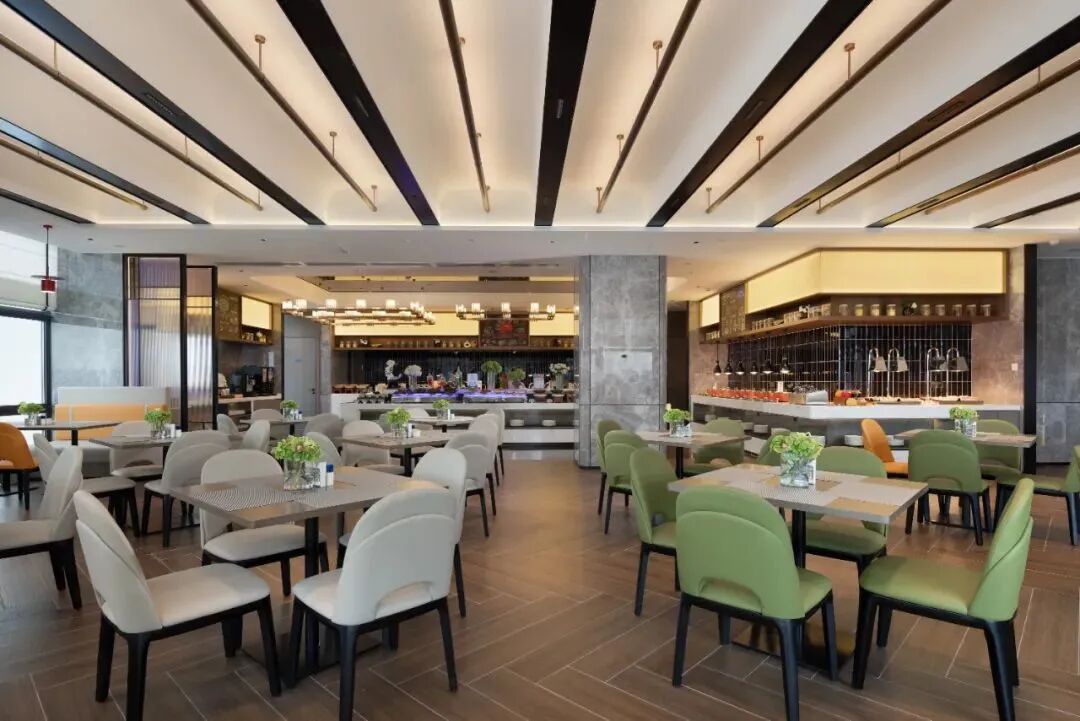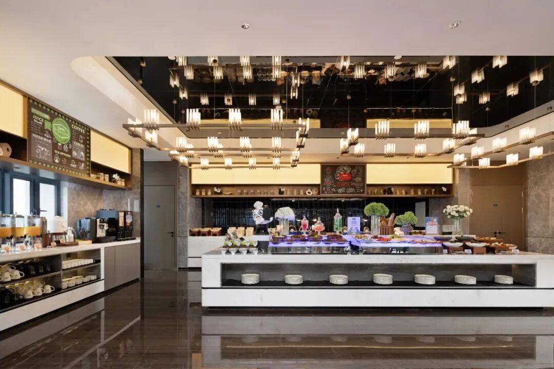 酒店配備高檔自助餐廳,裝修明亮寬敞幹凈,專業服務人員保持衛生整潔並提供微笑服務。