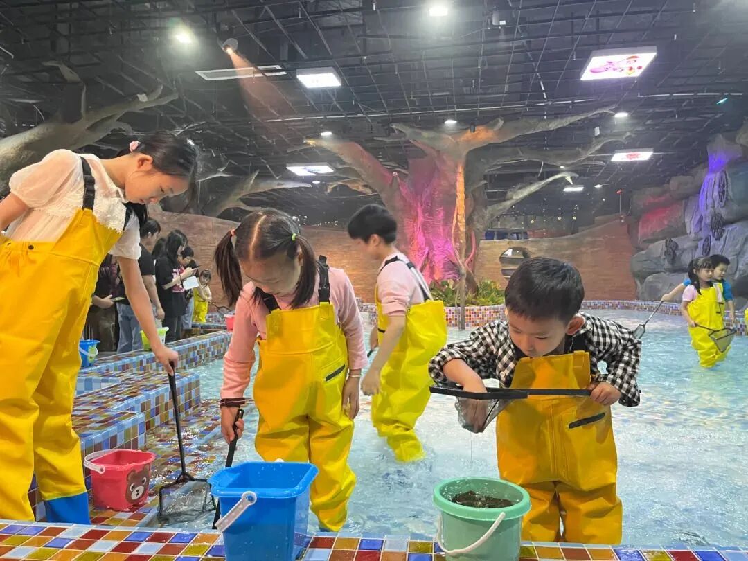 卷起褲腳抄網兜,超大淺水池等小朋友當“小漁夫”:調皮小魚嗖嗖遊,機靈小蝦蹦蹦跳;拿網兜水桶比誰眼疾手快撈得多,爭當“捕撈小冠軍”!