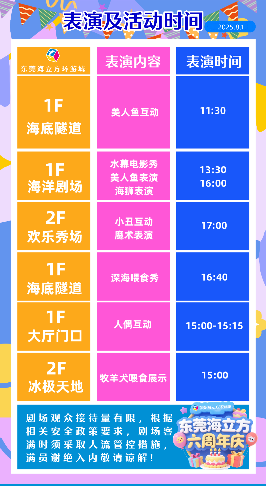 以下是東莞海立方環遊城的各種表演活動及其時間: