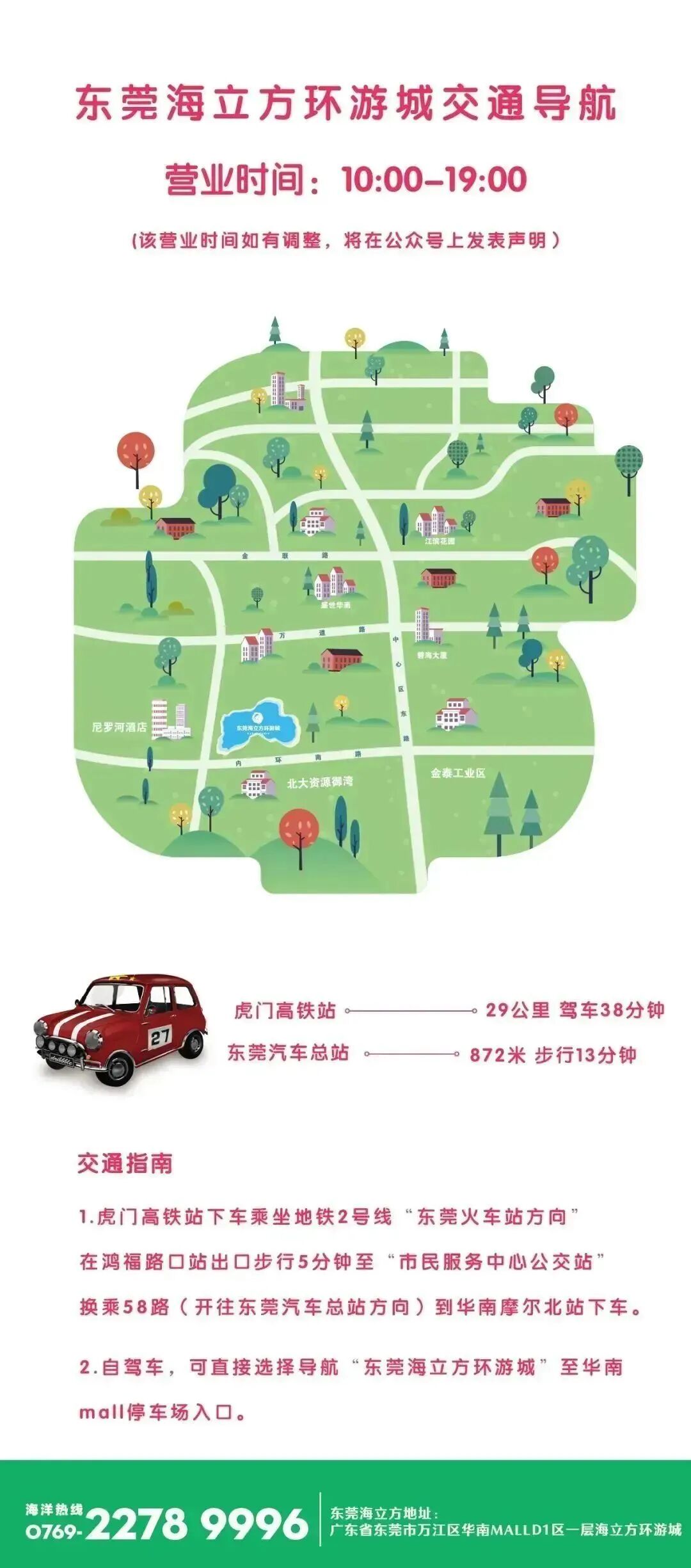 以下是東莞海立方環遊城的交通導航啦: