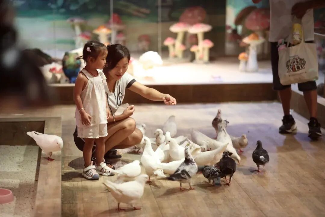 往白白胖胖小鴿子撒飼料,它們撲棱翅膀飛過來不怕人;蹲下伸手,大膽鴿子落手心站肩膀,軟乎乎啄得手心癢~小朋友驚喜跳腳;水裏魚群嗷嗷待哺,飼料一拋水面炸鍋,紅黃花錦鯉擠團搶食水花濺高,飼料到哪魚群湧到哪像水下風暴超壯觀!