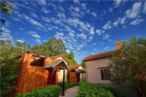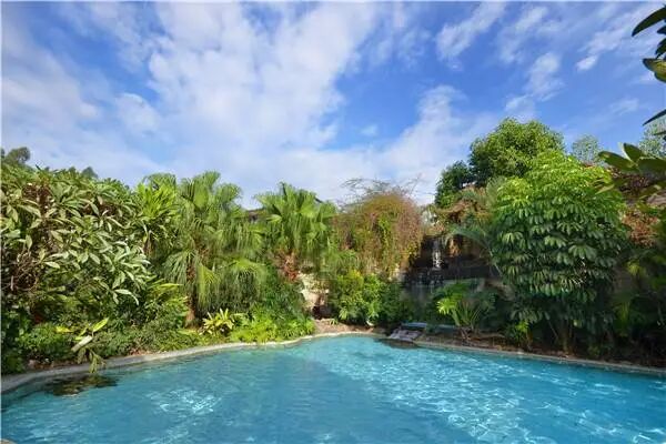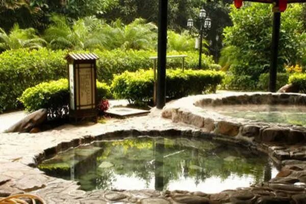 新銀盞溫泉度假村露天溫泉區采用園林不拘,度假村內山巒起伏,樹木蔥蘢,空氣新鮮,出水相擁,為珠三角地區一個難得的“天然氧吧”,在此浸泡溫泉,猶如置身世外桃源,感受身、心、身、神的放松與愉悅。
