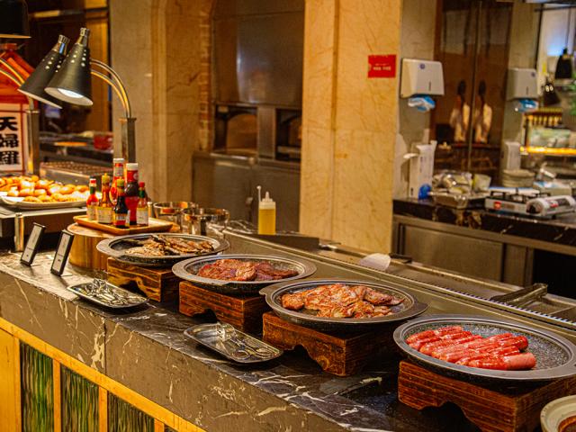 廚師采用明檔制作,各類菜品陳列在各式檔口,讓顧客可以清晰看到制作過程,保證食材新...