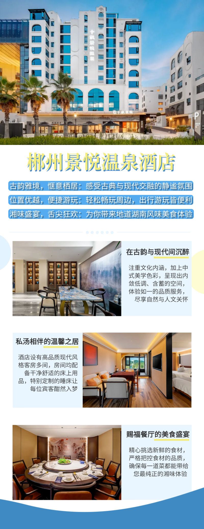 酒店緊鄰郴州市中心,地理位置得天獨厚,週邊的交通和遊玩資源也十分豐富,為遊客的出行和遊玩提供了極大的便利。