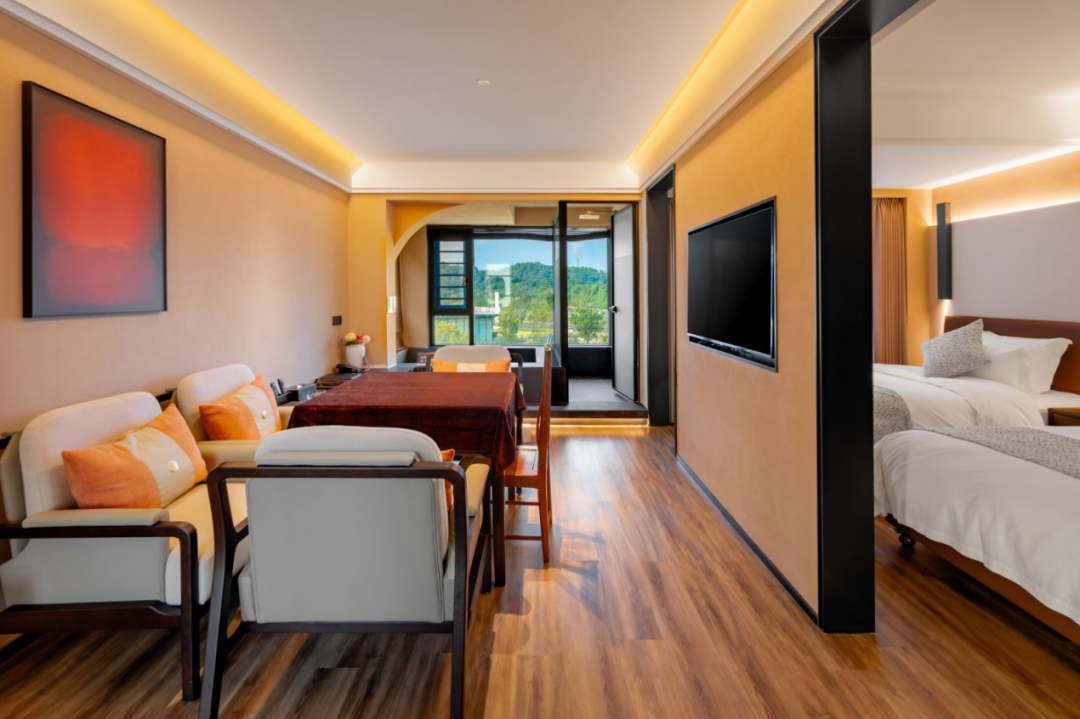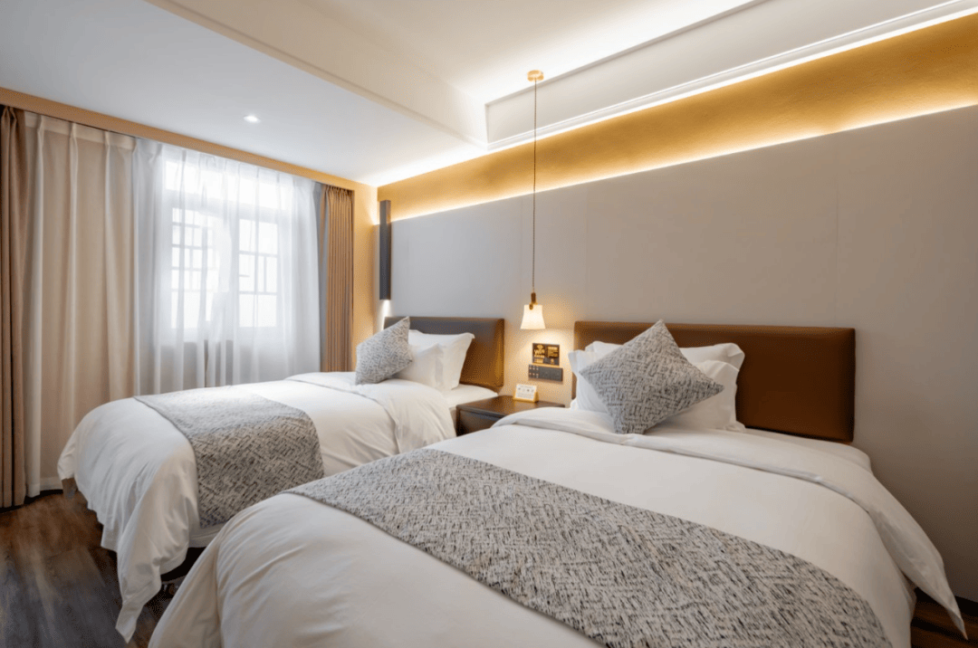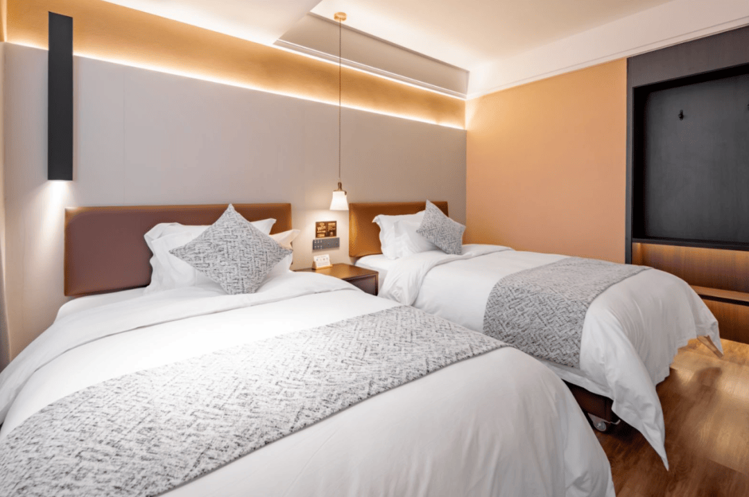 每一間客房都采用了新中式的裝修風格,將傳統的中式元素與現代的設計理念相結合 。原木色設計、淡雅的色彩,營造出一種溫馨、舒適而又富有文化內涵的氛圍。