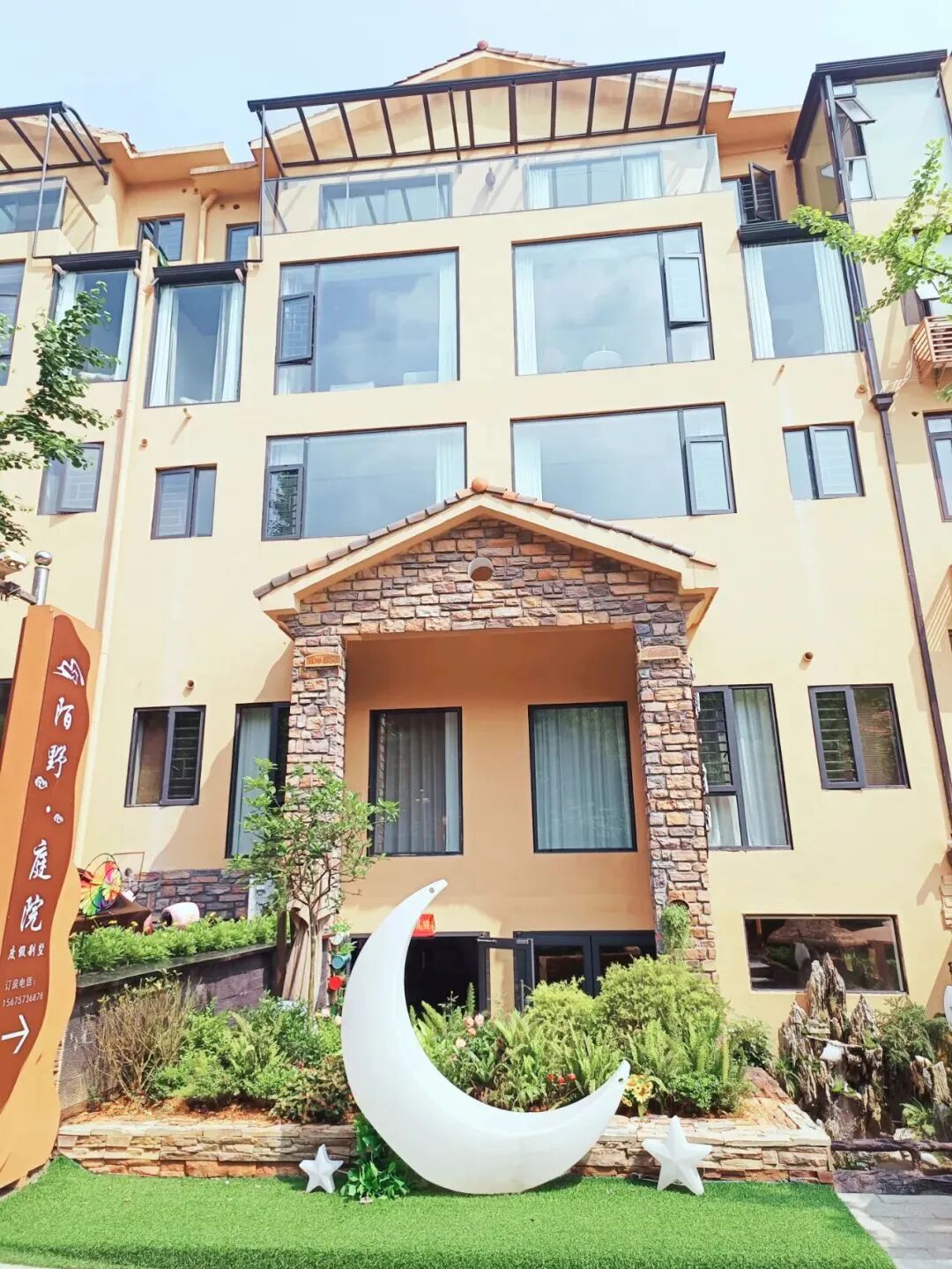 推開陌野・庭院度假別墅的雕花木門,一片近兩千平的私人庭院在眼前鋪展,宛如闖入了東江湖畔的 “世外桃源”,將喧囂隔絕在外,只留下滿院詩意與靜謐。