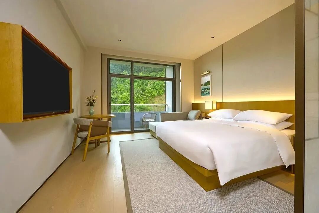所有客房均被打造為非常討喜的清雅新中式風格,室內色調及陳設自帶一種讓人靜下心來的溫馨感,躺在床上就能盡覽四季森野之景。