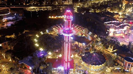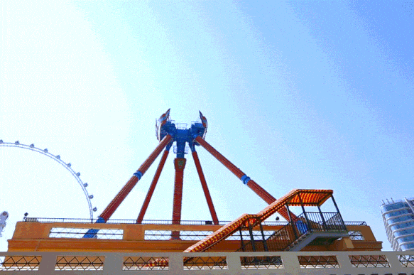 加勒比旋風:58米的超高飛行塔,仿佛置身20層高樓,離心速度可達53km/h,雙腳懸空,在空中回旋飛翔!你夠膽來挑戰嗎