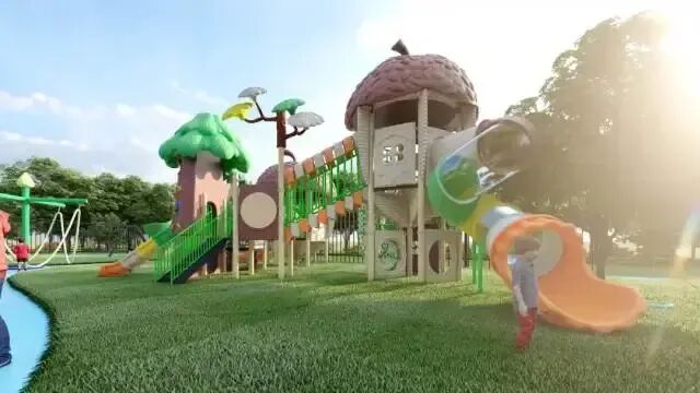 兒童需大人陪同,沉浸式童趣體驗,含多項無動力設施:彩虹秋千、旋轉繩索、回轉陀螺儀、南瓜屋、積木樂園、飛越滑索、蘑菇滑梯、七彩炫網、叢林魔網等